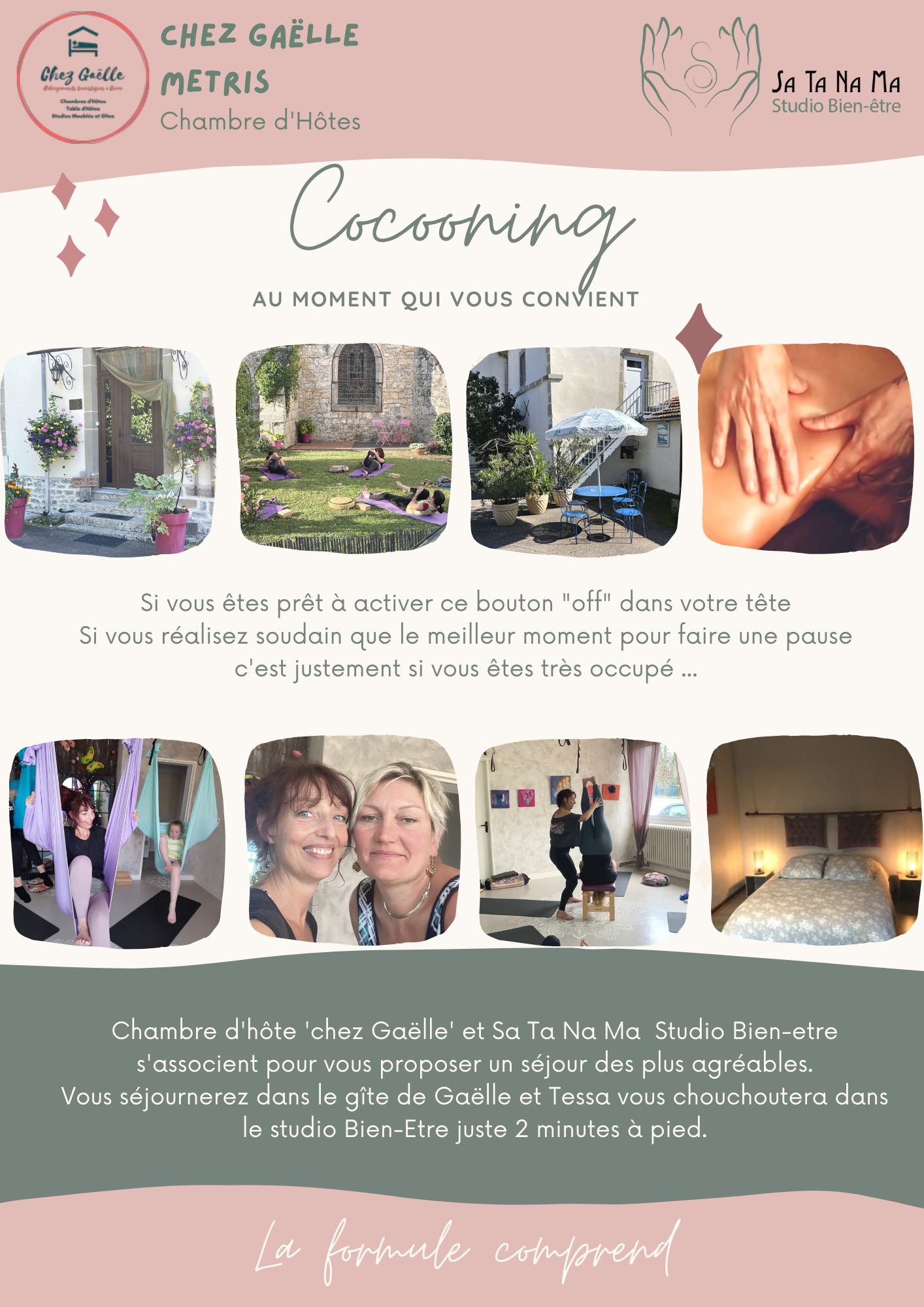Hourra, week-end! Qu'est-ce qu'on fait? Envie d'un bon week-end ensemble ? Alors bien sûr, vous voulez que votre week-end soit spécial ! Il existe un moyen de transformer un week-end ordinaire en un week-end inoubliable... Que diriez-vous de vous détendre ensemble dans le studio de bien-être de Tessa puis de cocooner à la ferme de Gaelle.